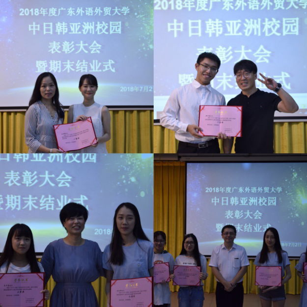 物換星移,廣外中國師生即将與在廣外度過了本學期流動校園課程的亞洲校園日韓留學生們話别。表彰大會最後,亞校老師們表達了對全體學生的美好祝願,冀望同學們孜孜不倦,再接再厲,在即将到來的期末考試中取得良好成績。